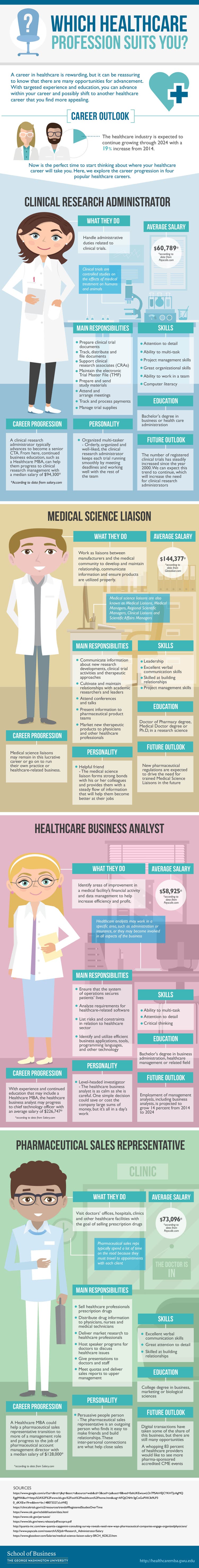 The healthcare industry is expected to continue growing through 2024 with a 19% increase from 2014. Now is the perfect time to start thinking about where your healthcare career will take you and which healthcare career best suits you. Here, we explore the career progression in four popular healthcare careers